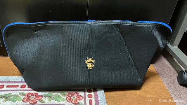 自宅で保管する際の埃よけや、バッグやケースに収納する際の傷防止のインナーケースを自作(正しくは監修)しました。元帥様にお願いし、100均ワッツで購入した110円のクッション袋2つを、真ん中でニコイチに縫い付けてもらいました。