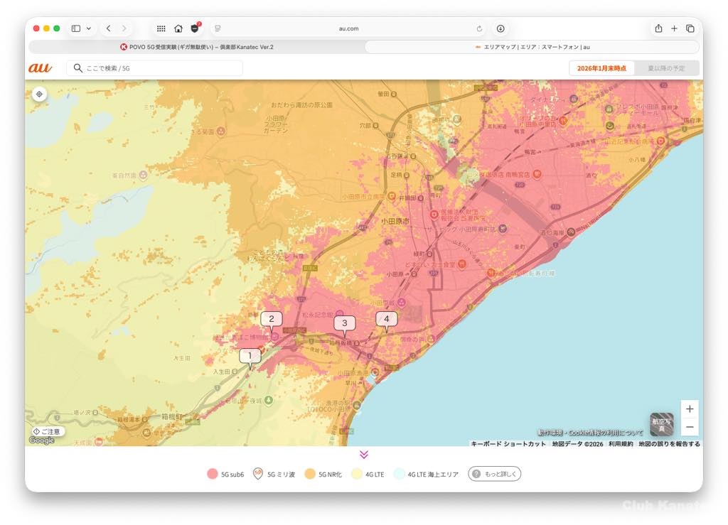 ◼️au 5G Sub6エリアの確認