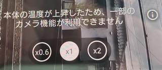 そこからしばらくビデオ撮影は続いたが、草加駅を過ぎ谷塚駅付近の埼玉県と東京都の県境辺りで「本体の温度が上昇したため、一部のカメラ機能が使えません」のメッセージ。過去の経験上このまま録画を続けると、カメラアプリが落ちファイルが保存されないので、ここで手動にて録画を停止。